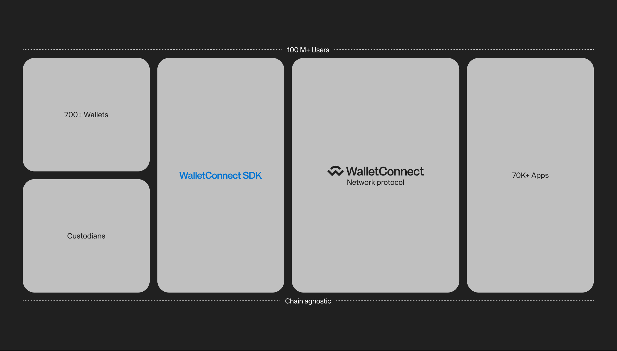 WalletConnect Wallet SDK is chain-agnostic by design. You can connect your users to any app across Ethereum, Solana, Bitcoin, and other networks with a single integration. No chain-specific customization needed.